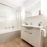 The interior of Haus Colosseo features a stone fireplace and sound-proofed windows furnished with a sofa set and a work desk. The apartment is equipped with Wi-Fi and a cable satellite TV, perfect for guests to enjoy their free time. A bathroom comes with a separate toilet, a bath, and a shower, along with a hair dryer and bath sheets.
